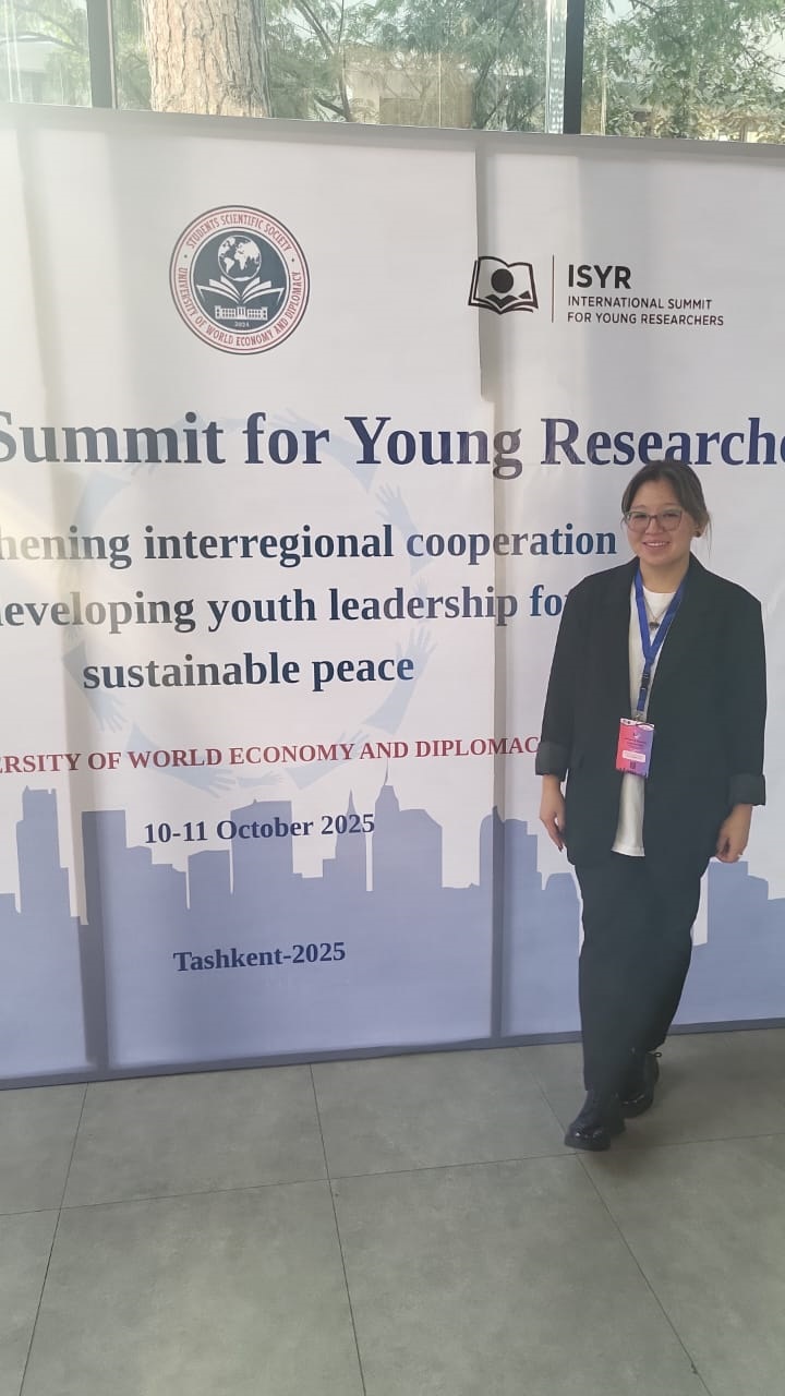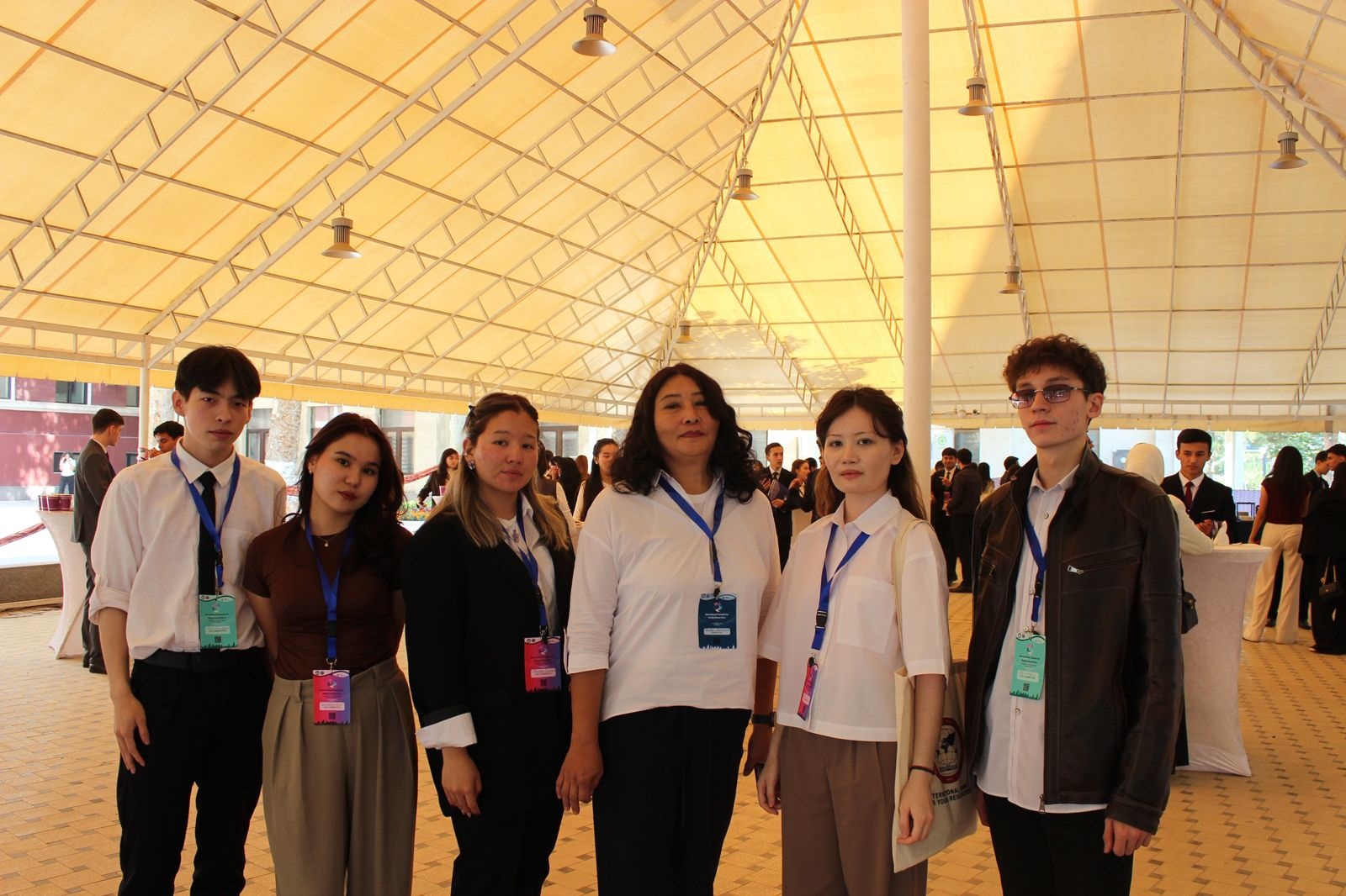 Студенты образовательных программ «6В04201 – Юриспруденция», «6В04202Международное право» и «6В03101 – Международные отношения» Жамали А. (2 курс), Фаткулин А. (3 курс), Тлебалганов Д. (3 курс), Кылышбекова А. (4 курс), Имашева А. (4 курс) под руководством ассоциированного профессора кафедры международного права Меермановой Ж.Б. успешно представили университет на Международном саммите молодых исследователей на тему «Укрепление межрегионального сотрудничества и развитие молодежного лидерства ради устойчивого мира», посвящённом празднованию 33-й годовщины основания Университета мировой экономики и дипломатии, который состоялся 10–12 октября 2025 года в г. Ташкент, Республика Узбекистан.