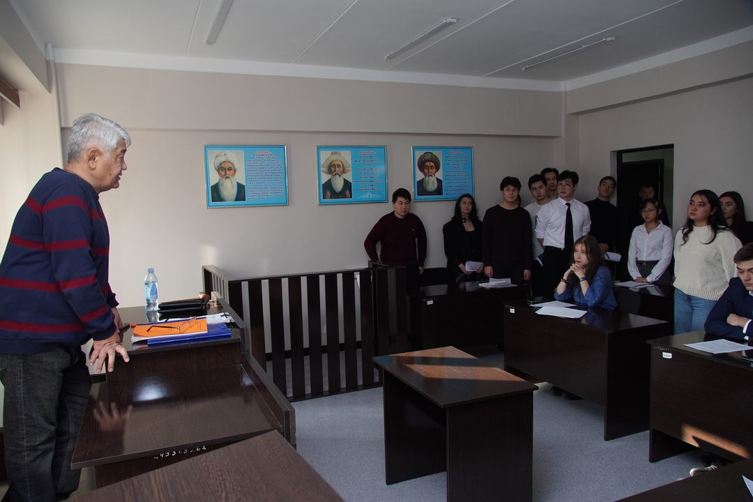 В рамках реализации проекта «Заң мен тәртіп» и в целях повышения правовой культуры студентов, формирования профессиональных компетенций, а также развития навыков юридического анализа, аргументации и ораторского мастерства, 25 ноября 2025 года студенты образовательных программ «6В04201 – Юриспруденция» и «6В04202 – Международное право» под руководством профессора кафедры международного права Кучукова Кайрата Махамбетовича организовали и провели учебный судебный процесс.