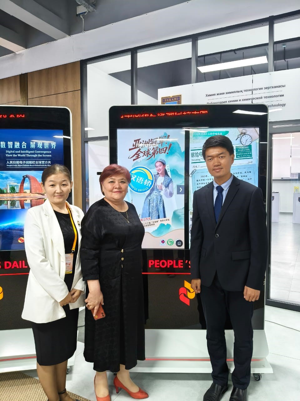 28 мая 2025 года в Казахском национальном университете имени аль-Фараби состоялось торжественное мероприятие, посвящённое презентации и установке экрана электронного чтения ведущей китайской газеты «Жэньминь жибао». От нашего университета в церемонии открытия приняли участие декан факультета востоковедения Кагазбаева Э.М., зам. директора Института Конфуция господин Ян Кун, преподаватели факультета востоковедения Хуңшан Айжан и Ху Хунъюй, а также наши студенты-волонтёры.