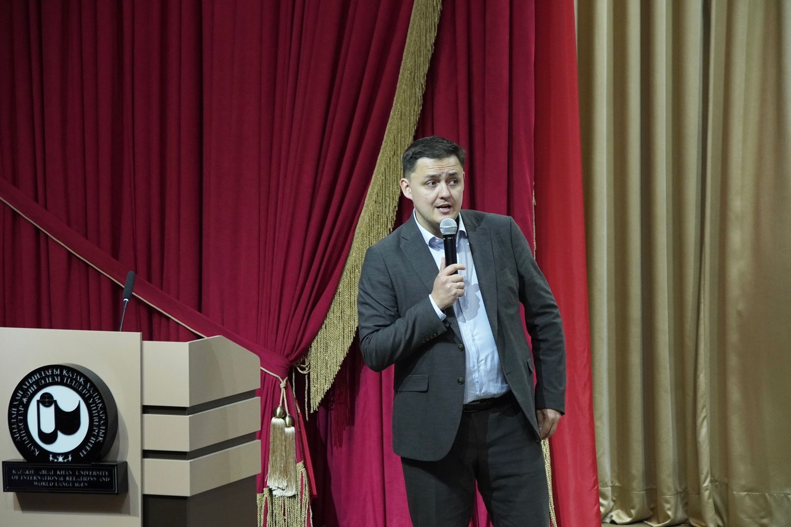 Астафьева Эвелина и Жагалов Жандос, представители АО «Береке Банк», представили образовательную инициативу, направленную на профилактику дропперства и защиту от кибер- и финансового мошенничества. Спикеры подробно рассказали о механизмах распространённых мошеннических схем, способах выявления подозрительных действий и мерах цифровой безопасности при работе с банковскими продуктами.