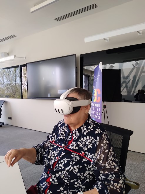 Особенно впечатлила виртуальная реальность, созданная с помощью VR-очков Meta Quest 3, что позволило погрузиться в океан, видеть его в панорамном режиме (360°), «дотрагиваться» до кораллов и при этом ощущать опасность открывающейся бездны. Также была продемонстрирована возможность изучения иностранных языков с помощью специальной программы (ImmerseMe) и виртуальных ситуаций. Этот опыт показал, насколько иммерсивное обучение в VR-среде может быть мощным инструментом в образовательных целях.