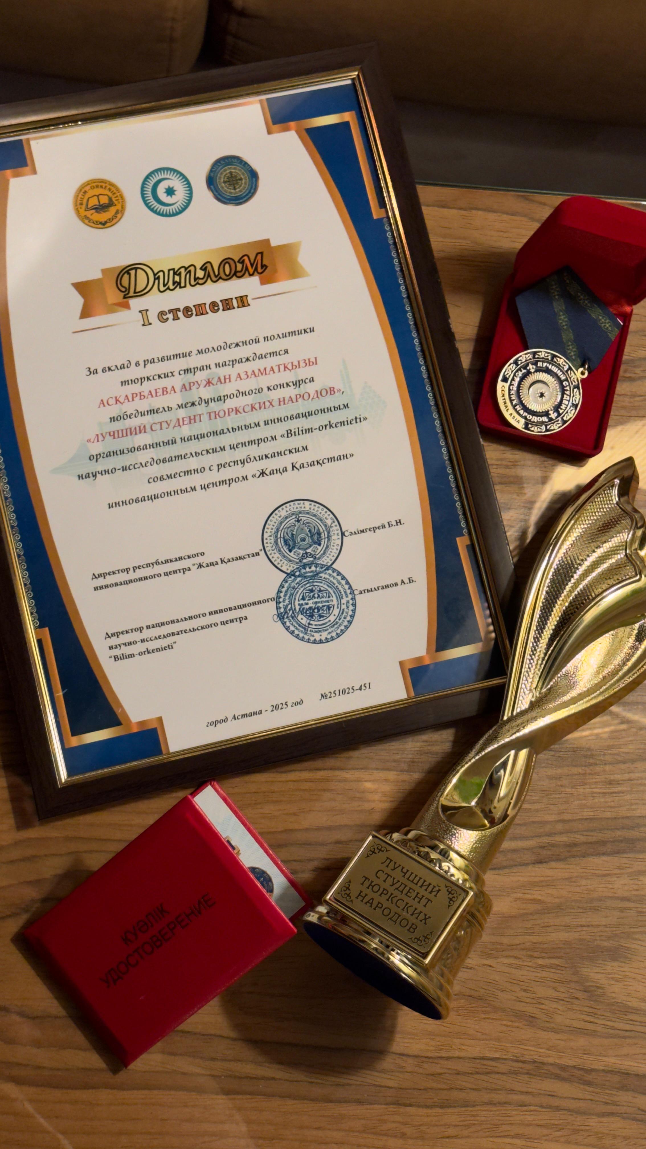 В результате Аскарбаева Аружан была награждена дипломом первой степени и медалями, а ее достижения опубликованы в сборнике. Мы искренне поздравляем нашего студента, который прославил наш университет и факультет!