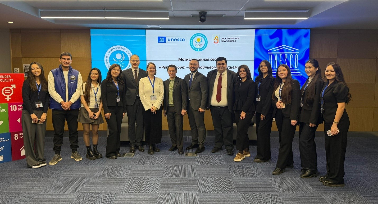04.05.2025 г. В UN Plaza города Алматы Региональный офис ЮНЕСКО совместно с Национальным олимпийским комитетом Республики Казахстан провели мотивационную сессию для студентов вузов «Через спорт – к устойчивому будущему» в рамках глобальной инициативы ЮНЕСКО Fit for Life.