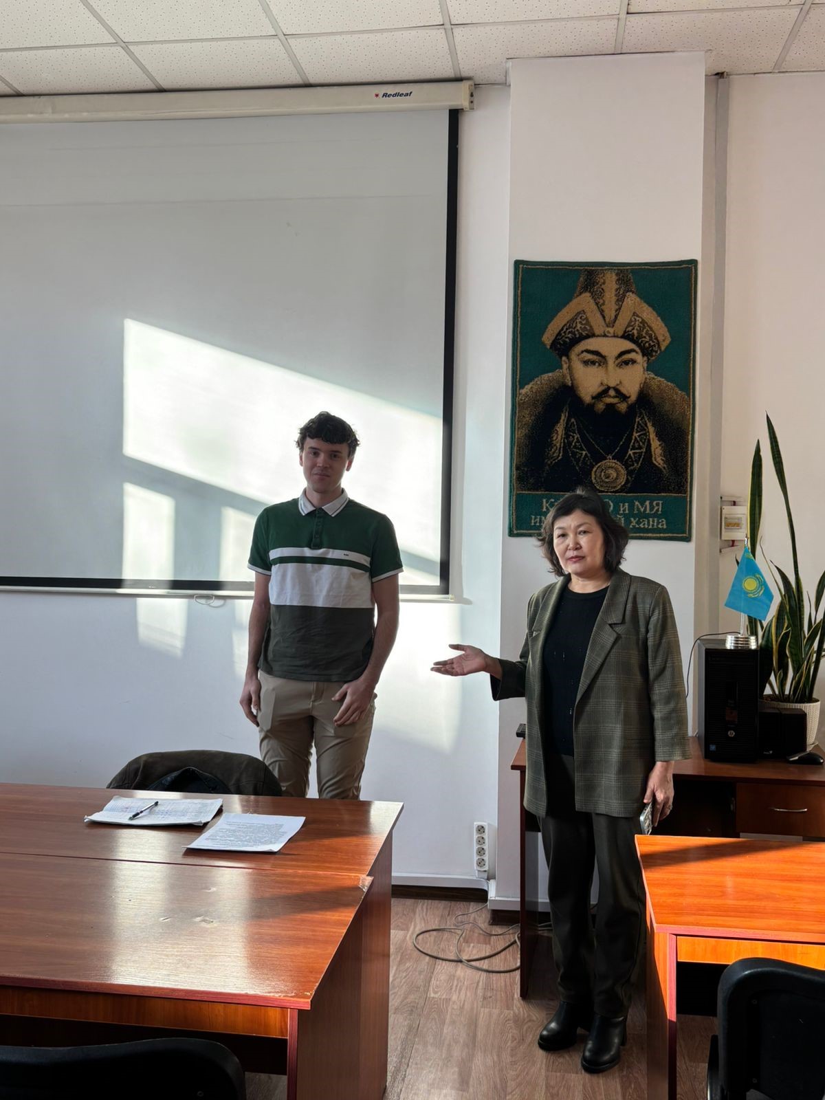 11 декабря 2025 года на Факультете Перевода и филологии КазУМОиМЯ имени Абылай хана состоялась лекция по дисциплине «Страноведение» для студентов 1 курса образовательной программы «6В02301 – Переводческое дело». Лекцию провёл гражданин США, в настоящее время являющийся руководителем программы «Flagmanship» в городе Алматы Эрол Алган. Лекция была проведена на тему: «American history: past and present». Целью лекции стало углубление знаний студентов и развитие их страноведческих компетенций.