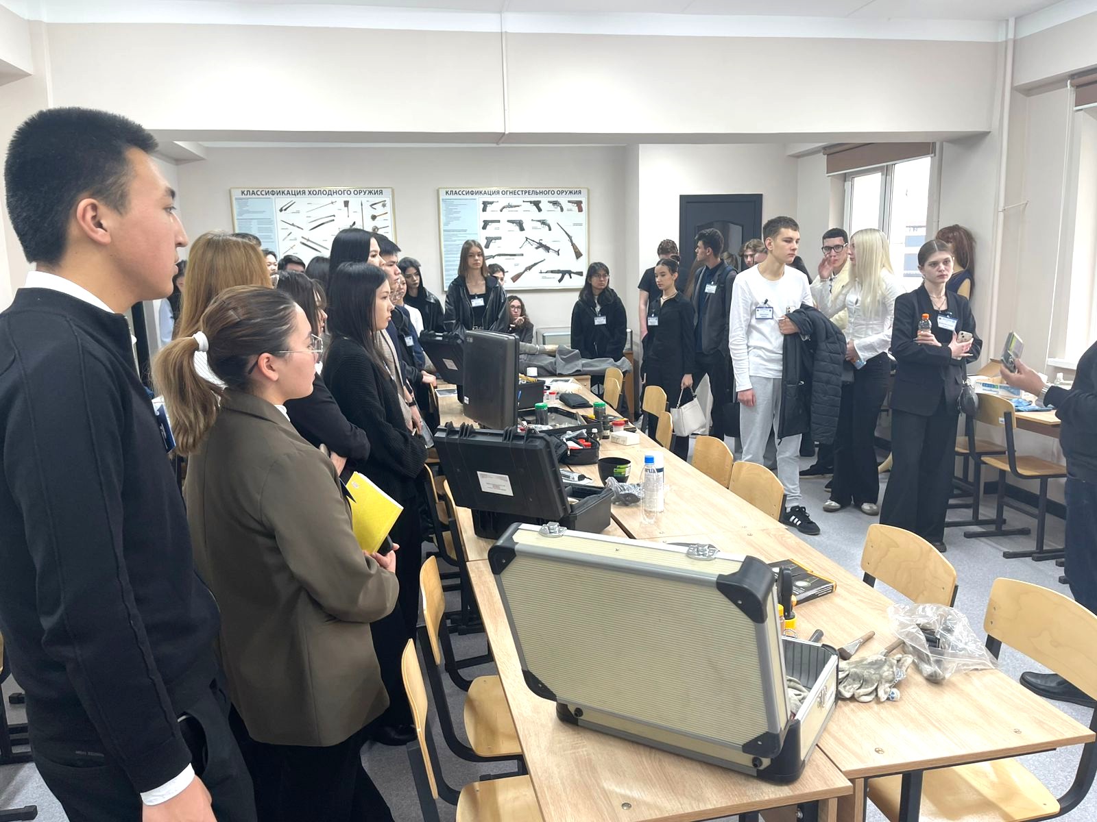 В рамках программы олимпиады для участников была организована экскурсия по специализированным аудиториям, в которых проходят практико-ориентированные занятия. Особый интерес вызвала криминалистическая лаборатория, где студенты отрабатывают практические навыки фиксации и исследования доказательств, проведения трасологических и почерковедческих экспертиз, а также анализа вещественных доказательств. Также участникам был представлен зал судебных заседаний, представляющий собой современную учебную площадку, создающую реалистичные условия для проведения модельных судебных процессов и формирования навыков судебной риторики и процессуальной культуры.