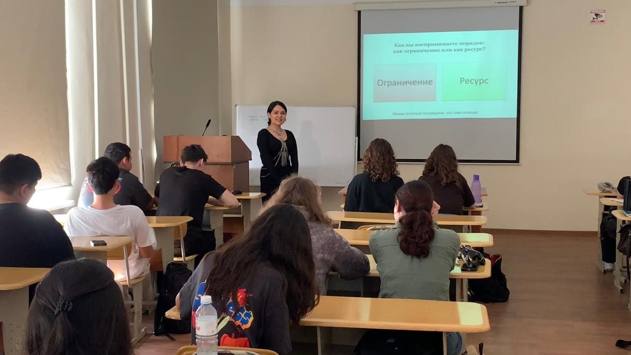 С самого начала студентам был предложен дискуссионный вопрос: порядок -это ограничение или возможность? Участники заняли разные позиции и в ходе обсуждения пришли к выводу, что восприятие порядка во многом зависит от внутреннего состояния человека, его установок и уровня личной ответственности.