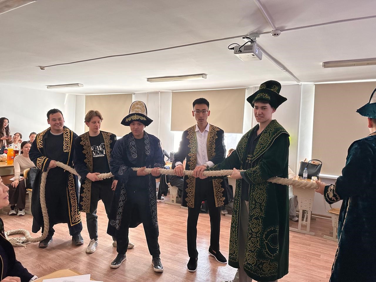 В рамках мероприятия были организованы национальные игры: студенты соревновались в асыках, играли в тогызкумалак, а также участвовали в перетягивании каната и армрестлинге.